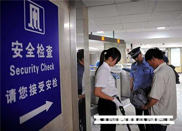 (4)旅客身体检查:旅客通过特设的探测门,进行身体检查。如发出报警声,还需用探测器再查,或重新返回,将可能发出报警声的钥匙、香烟、打火机等金属物品掏出来,直到通过时不再发出报警声为止。