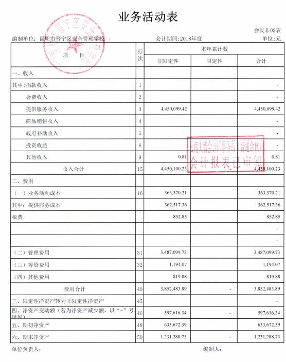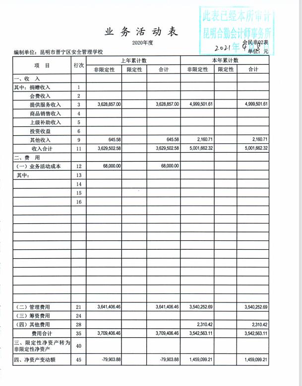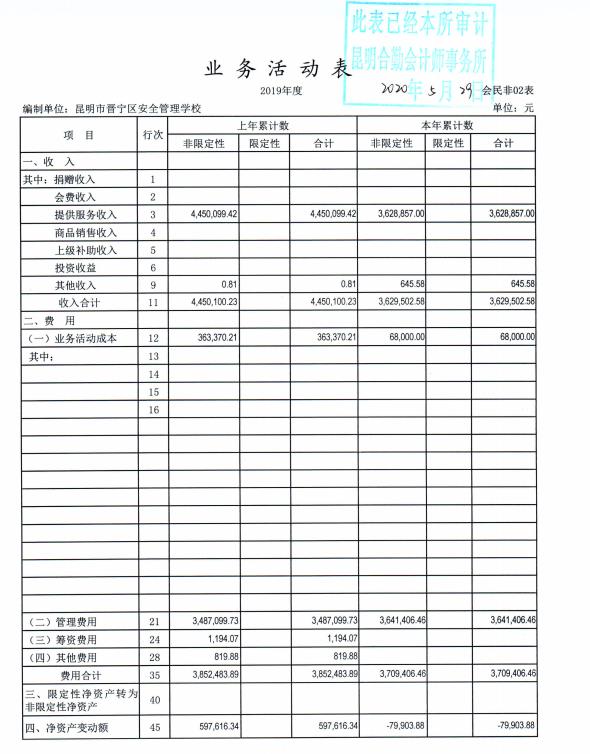 昆明市晋宁区安全管理学校2018-2020年业务活动表