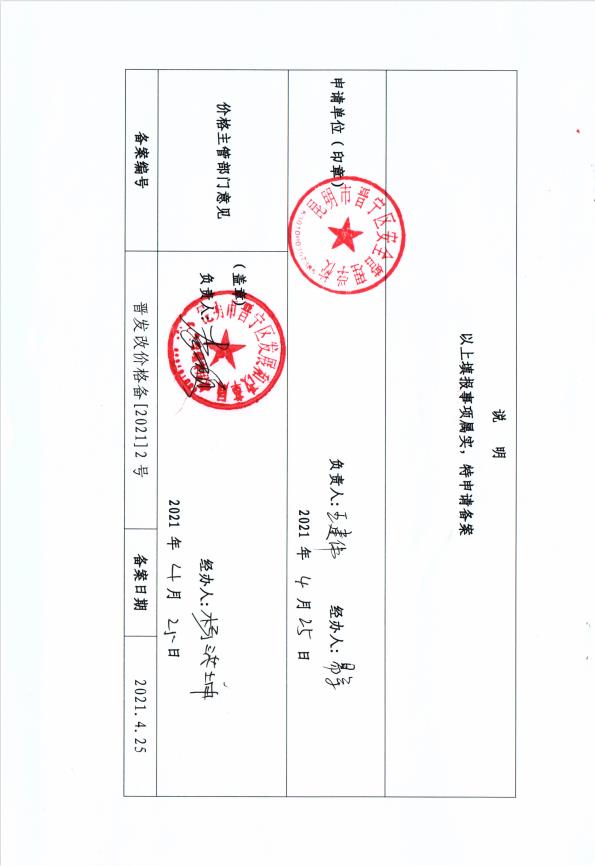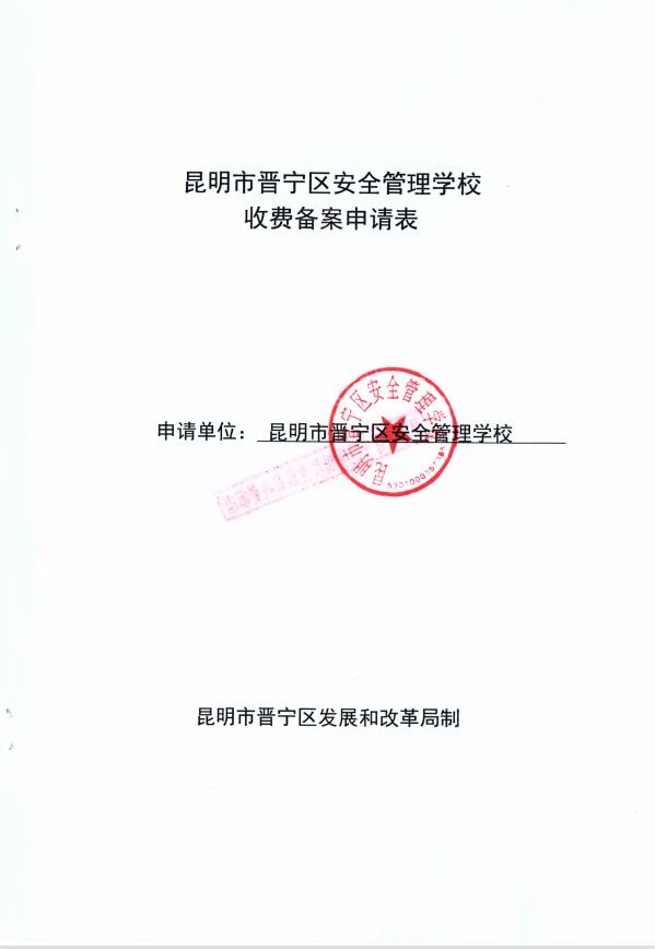 昆明市晋宁区安全管理学校2021年收费情况备案表